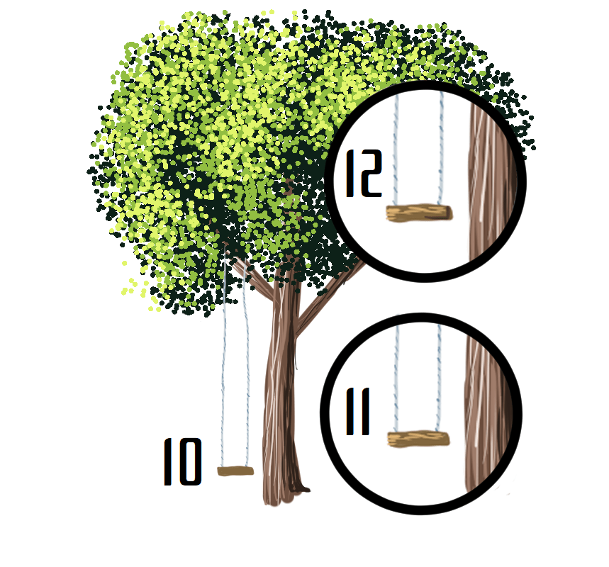 Step 8-9: Now it’s time to paint the ropes for the swing. When you’re painting the ropes, try to paint the entirety of each rope with a single stroke, else they might look like they’re cut in multiple pieces. After you’ve painted the ropes, you can add a little bit of a braided texture by using a slightly darker color and adding some diagonal strokes as shown in the example.