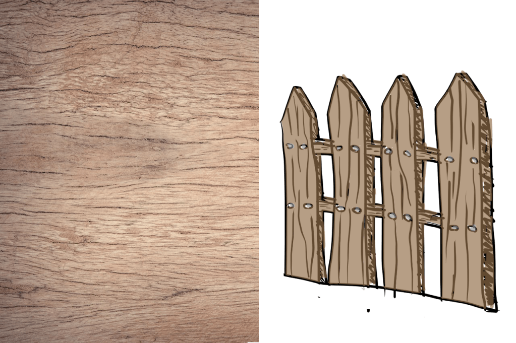 So instead of trying to capture every tiny detail, try capturing the general identifying characteristics. As an example, in a lot of sketches of scenes containing picket fences or wood paneling, you’ll notice that the texture of the wood is often depicted as a few crooked lines running haphazardly along the board. In real life however, if you look at a piece of lumber, you’ll notice there are actually countless little fissures that make up the wood grain, along with the occasional, larger, more prominent ones. Yet most artists don’t worry about adding all these little fissures, instead, they add a few larger lines to give the characteristic of a wood grain, and that’s it. No one questions what the item is because it has that important characteristic that helps define what it is.