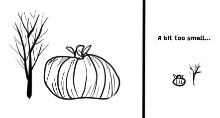 (The “too small side”: Is it an apple, a bag, or pumpkin? Is it a stick, a tree, or an exploding firework?)